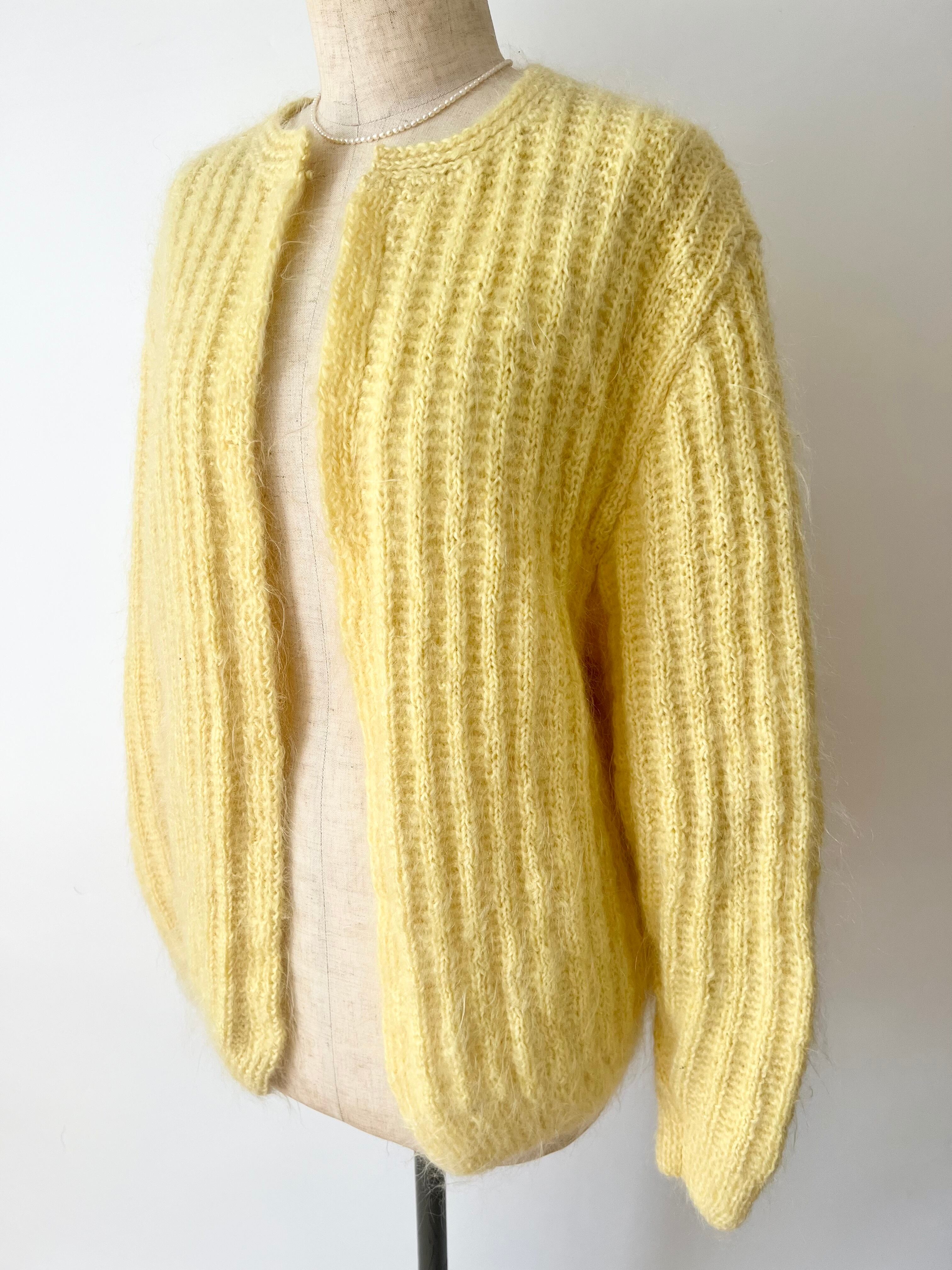 レモンイエローのモヘアニットカーディガン