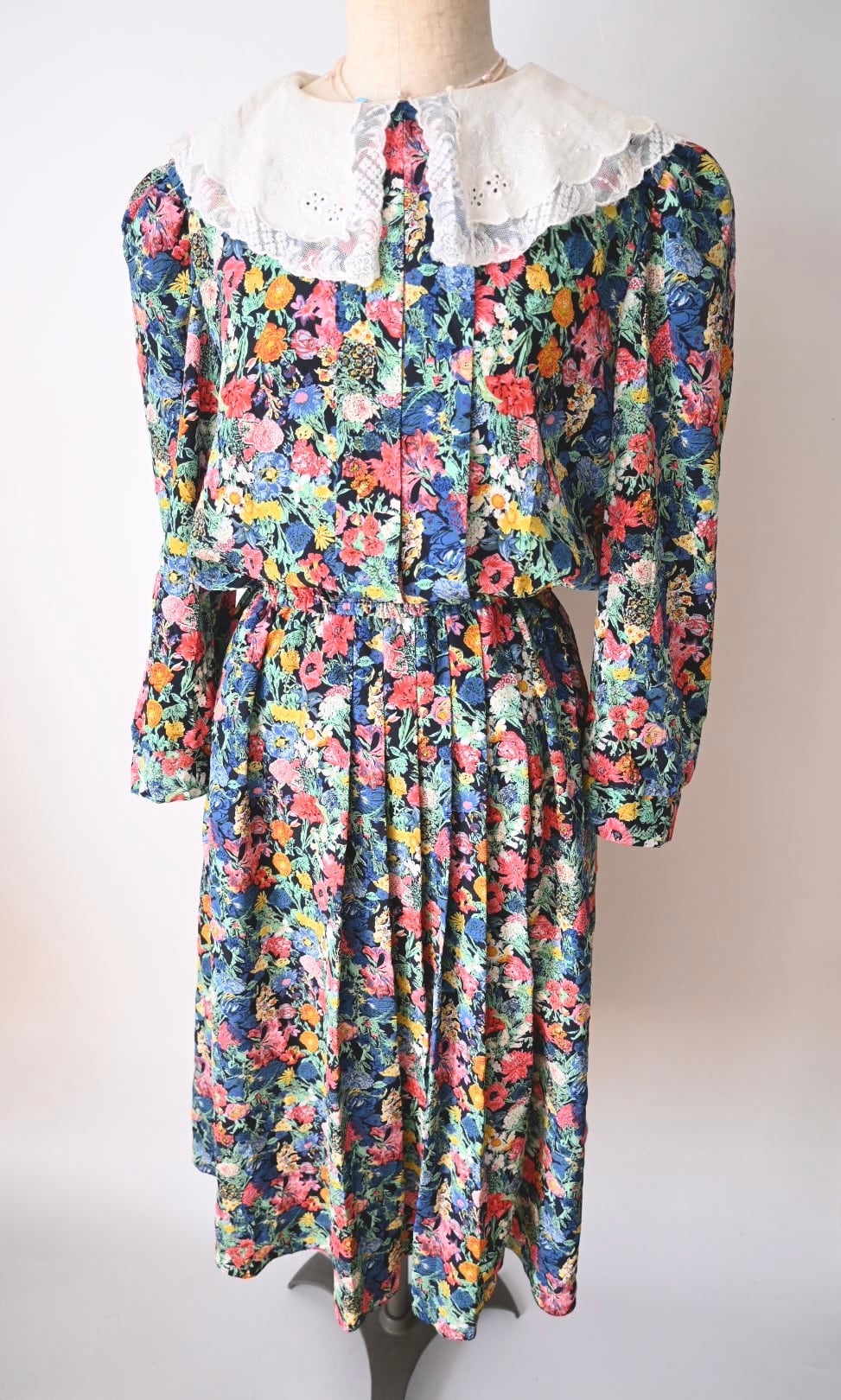 80s90sレースの襟付きヴィンテージワンピースドレス