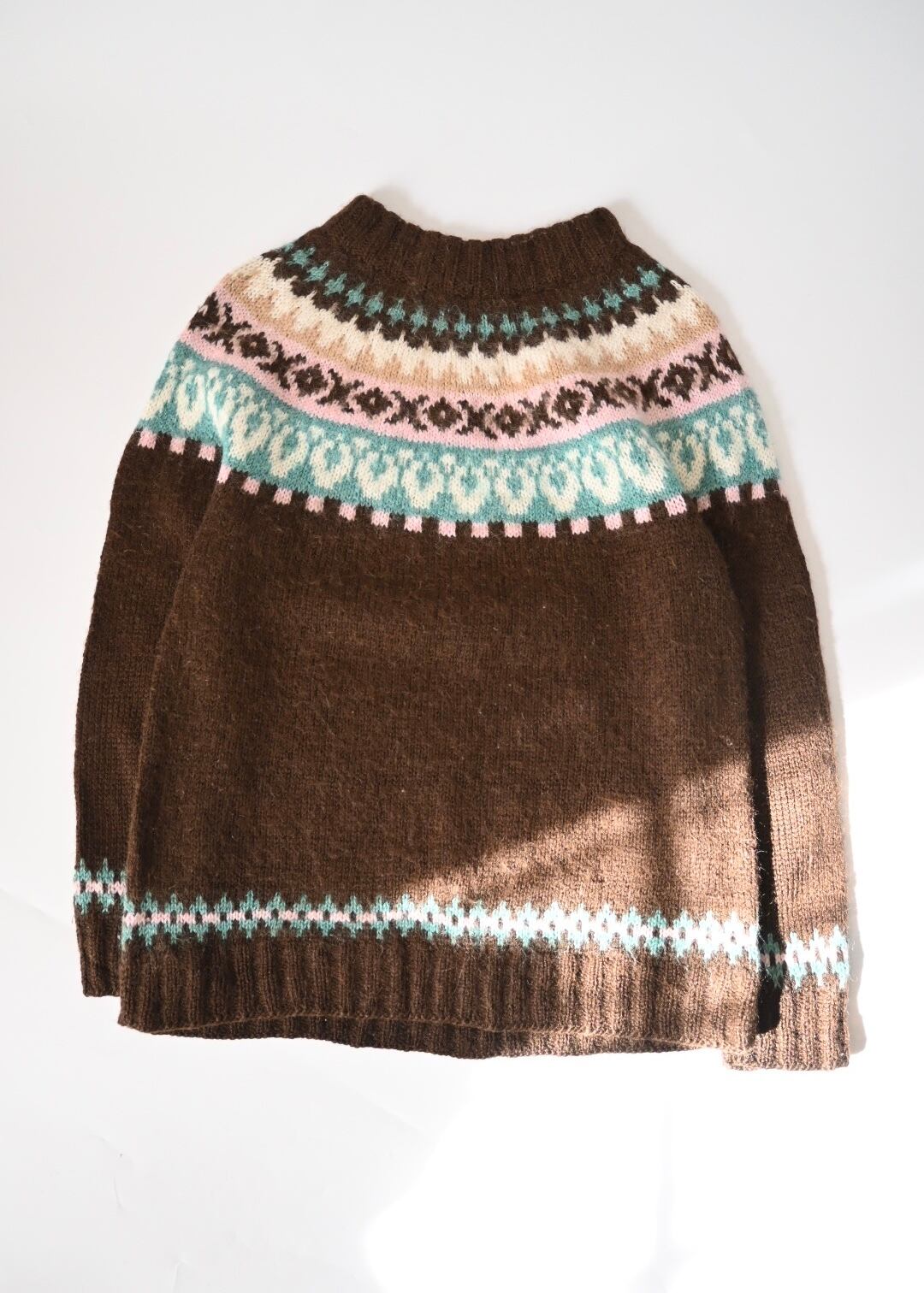 茶色のノルディック柄ニット