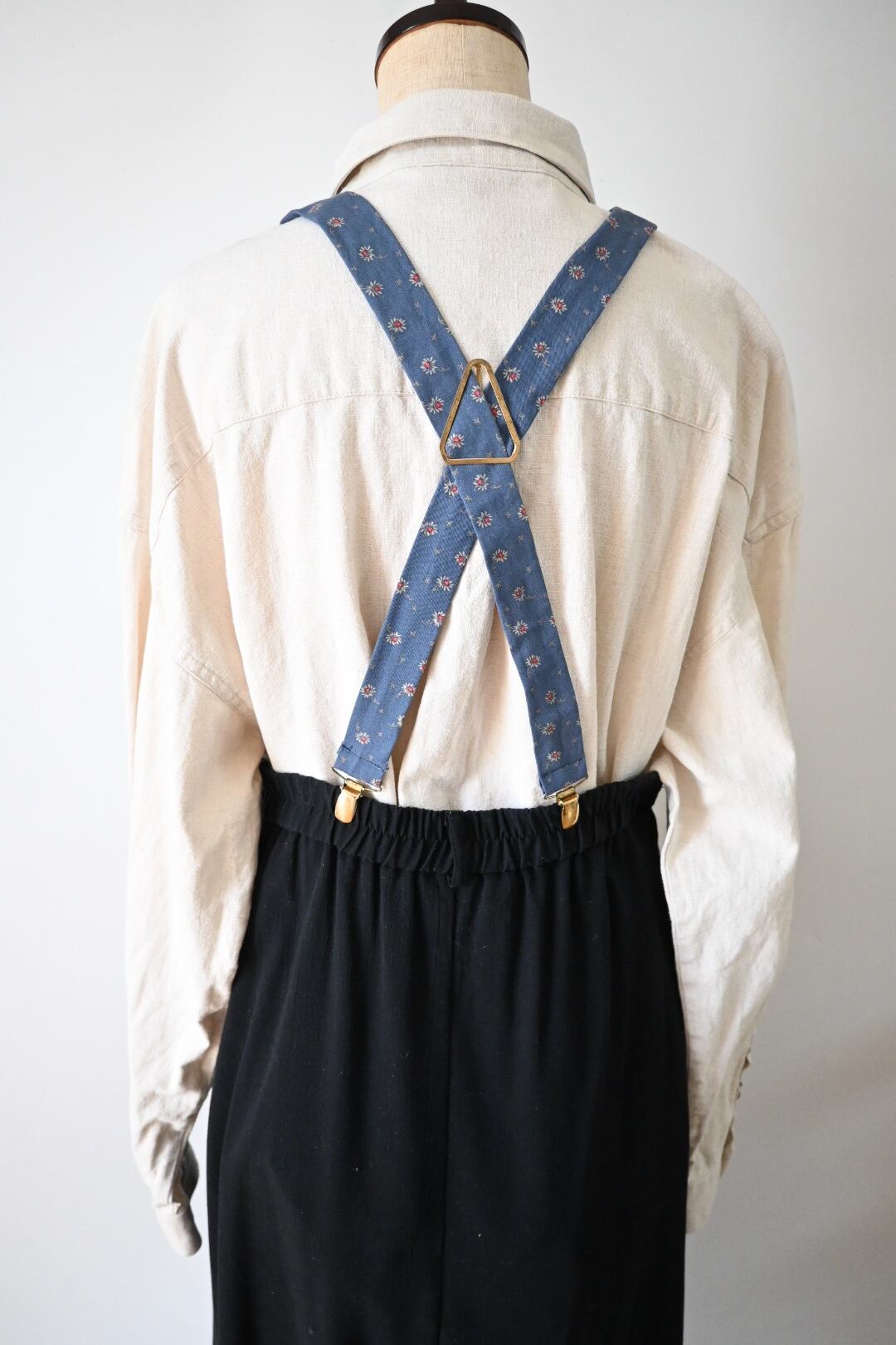 ウエストが大きめですのでサスペンダーなどで留めると履きやすいです。