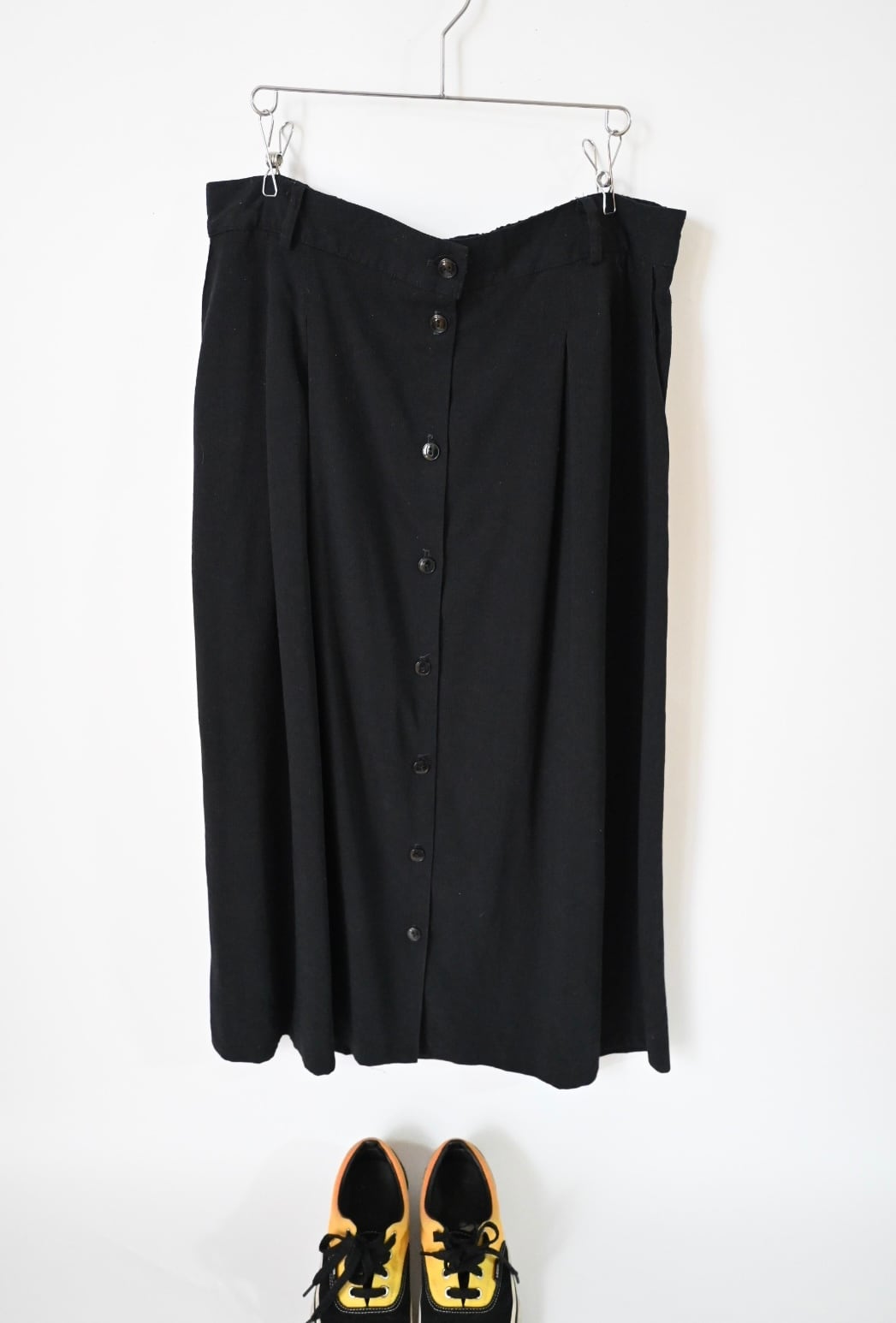 前にボタンが並んだシンプルなスカートです。